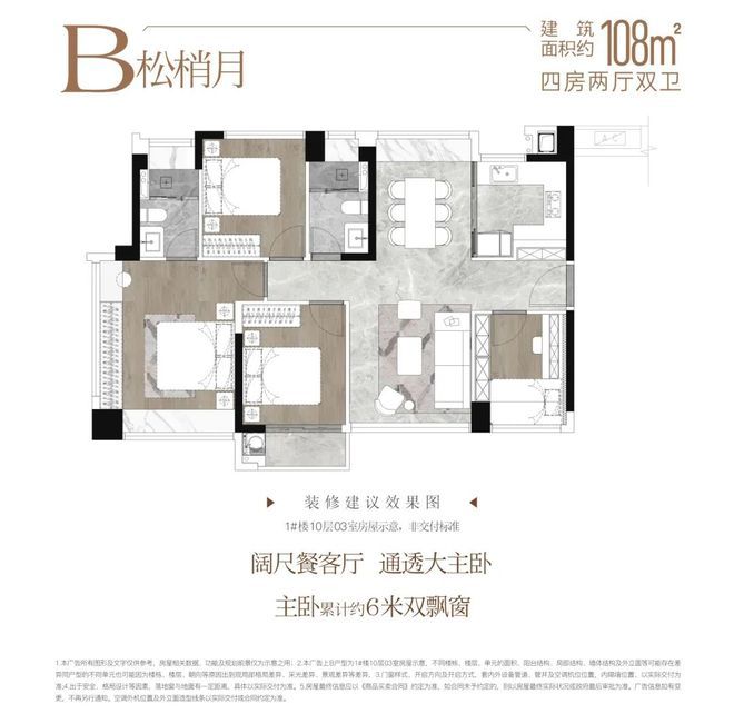 108㎡四房:实得120㎡空间,6.6米横厅+南北通透,媲美市面120㎡产品。